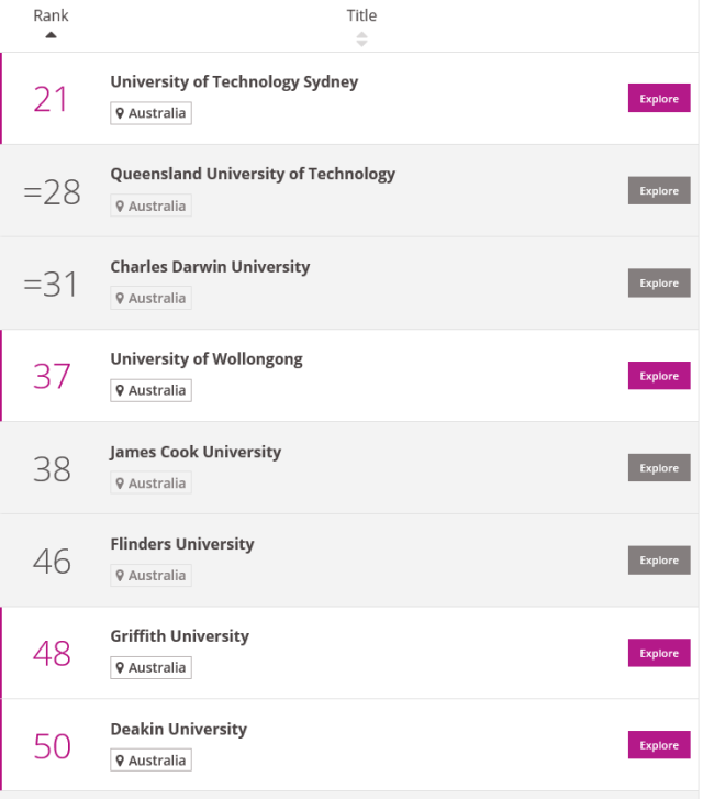 今年澳洲共有19所大学入围150强,仅次于英国的25所。其中,有8所澳洲大学进入Top50,有16所大学进入Top 100,排名前三的分别是悉尼科技大学UTS、昆士兰科技大学QUT和北领地的查尔斯达尔文大学。小编今日精选了其中12所人气颇高的年轻顶尖大学,为大家选校提供参考。